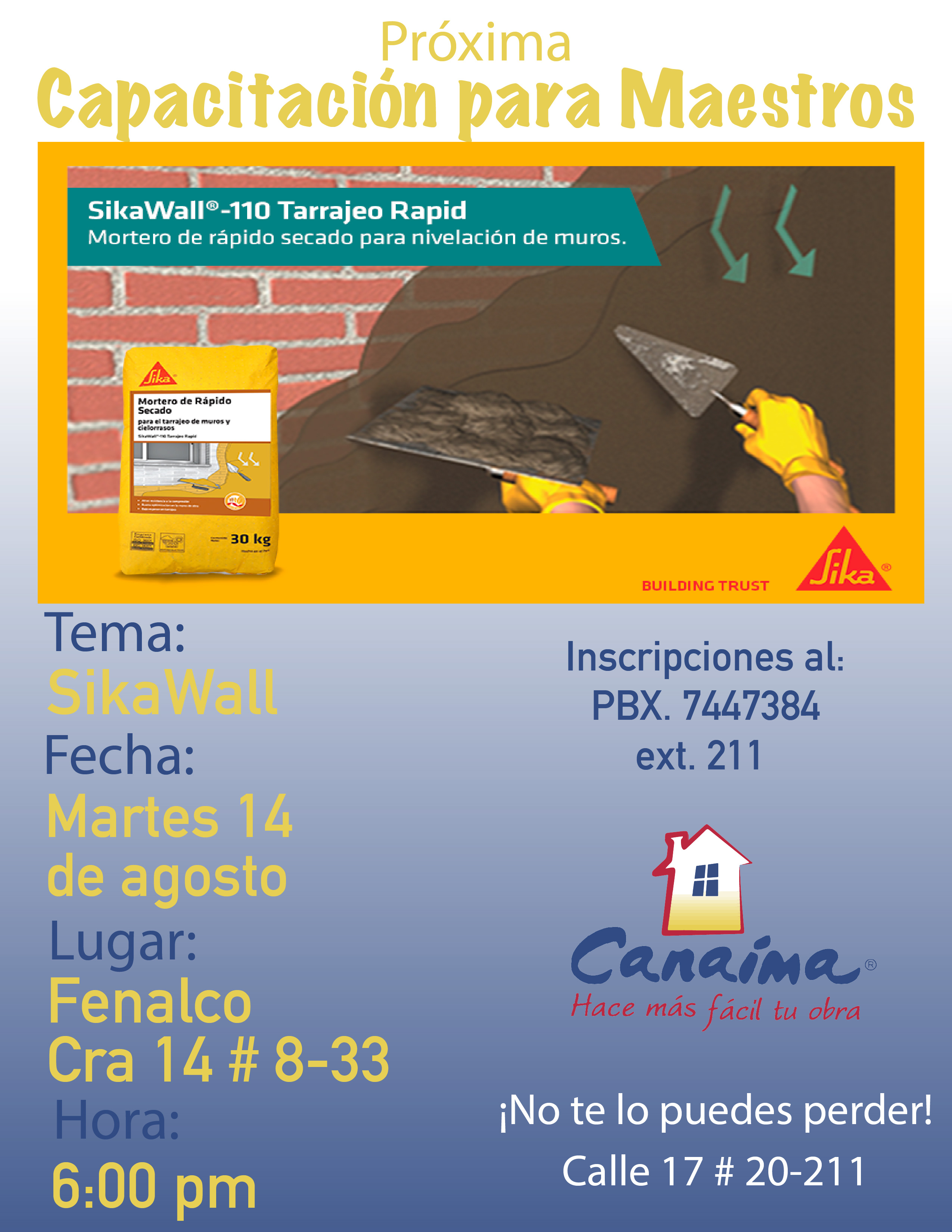 Ven este 14 de agosto y disfruta de una gran capacitacion sobre el nuevo producto de la linea de Sika, sikawall